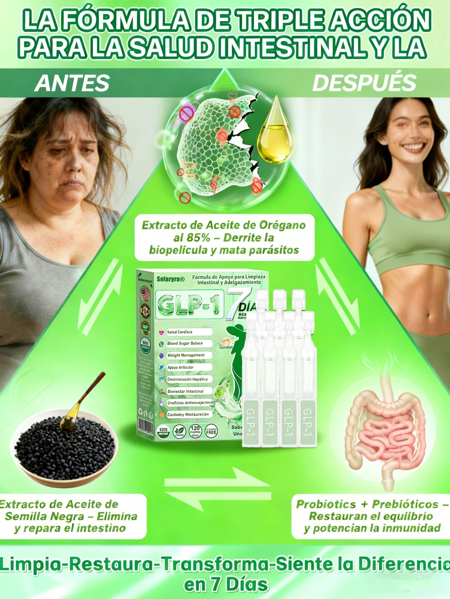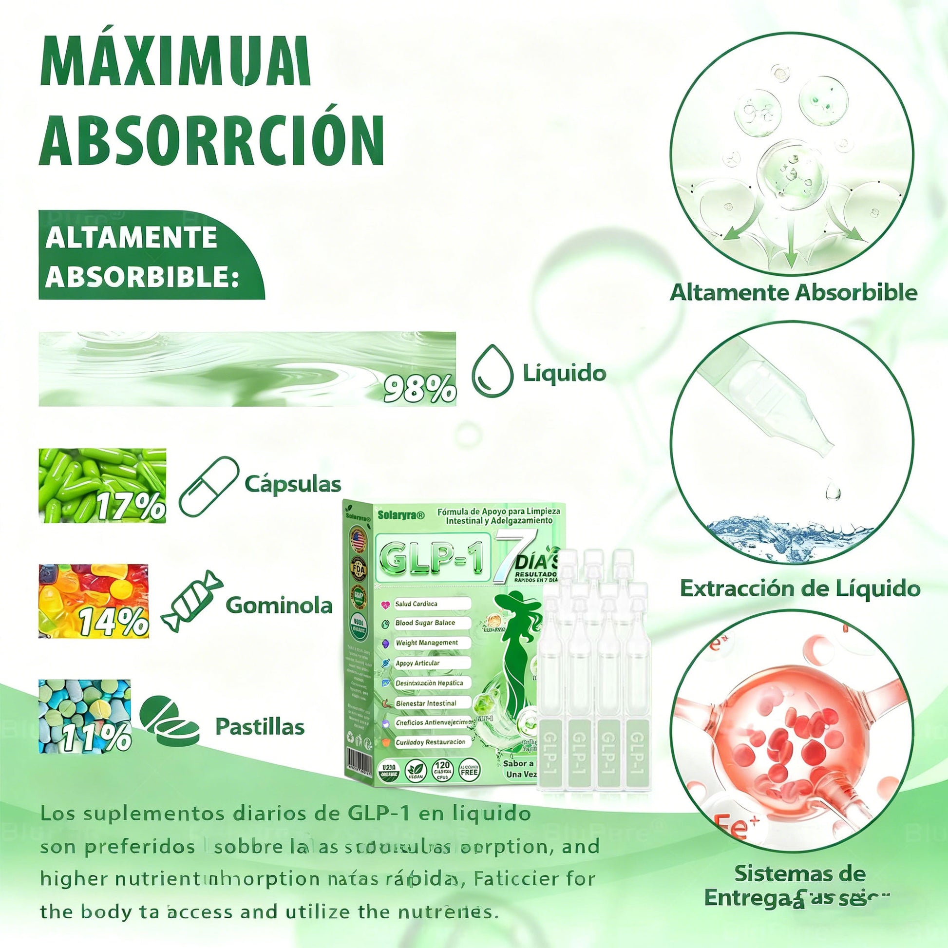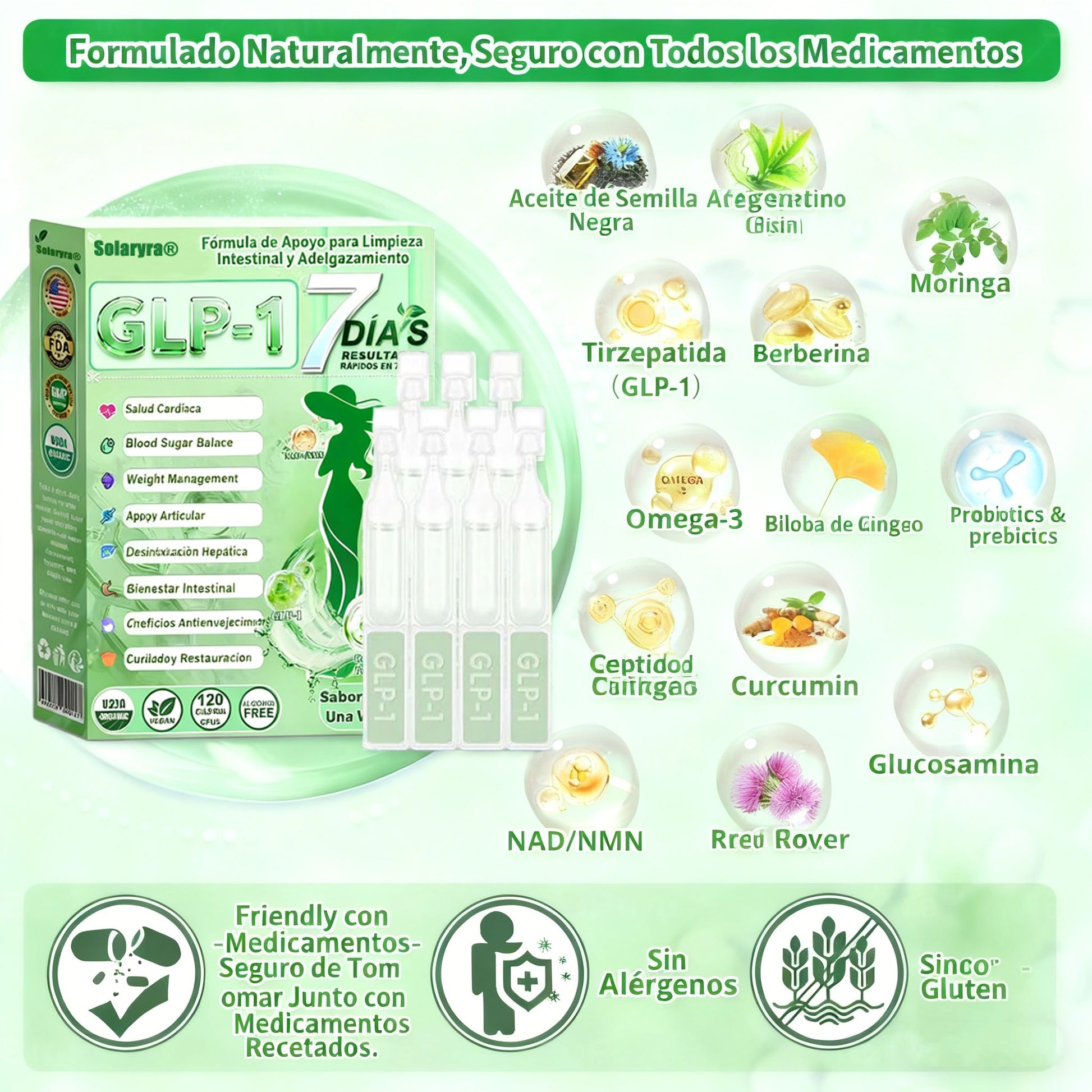 Solaryraยฎ GLP-1 ๐‘ฎ๐’–๐’• ๐‘ช๐’๐’†๐’‚๐’๐’”๐’† ๐’‚๐’๐’… ๐‘บ๐’๐’Š๐’Ž ๐‘บ๐’–๐’‘๐’‘๐’๐’“๐’• ๐‘ญ๐’๐’“๐’Ž๐’–๐’๐’‚ fue desarrollado durante tres aรฑos por un equipo internacional de mรกs de 30 expertos certificados en endocrinologรญa, diabetologรญa y gastroenterologรญa. Esta fรณrmula avanzada basada en la ciencia combina el agonista de GLP-1 tirzepatida con un poderoso espectro de nutrientes botรกnicos de grado superalimento para Desintoxica el intestino, restaura el equilibrio digestivo, mejora el metabolismo y acelera la descomposiciรณn de las grasas, a la vez que fortalece los sistemas inmunitario y linfรกtico para una funciรณn interna รณptima. Enriquecida con 60 extractos de plantas funcionales y micronutrientes, la fรณrmula proporciona un metabolismo y un apoyo integrales, ayudando al sistema digestivo. El cuerpo se mantiene equilibrado, con energรญa y resiliente durante cada etapa del control de peso. Clรญnicamente validada y conforme a la FDA, la soluciรณn oral Solaryraยฎ GLP-1 ofrece un enfoque holรญstico basado en la evidencia para el control de peso sostenible, la salud intestinal y el bienestar corporal total.