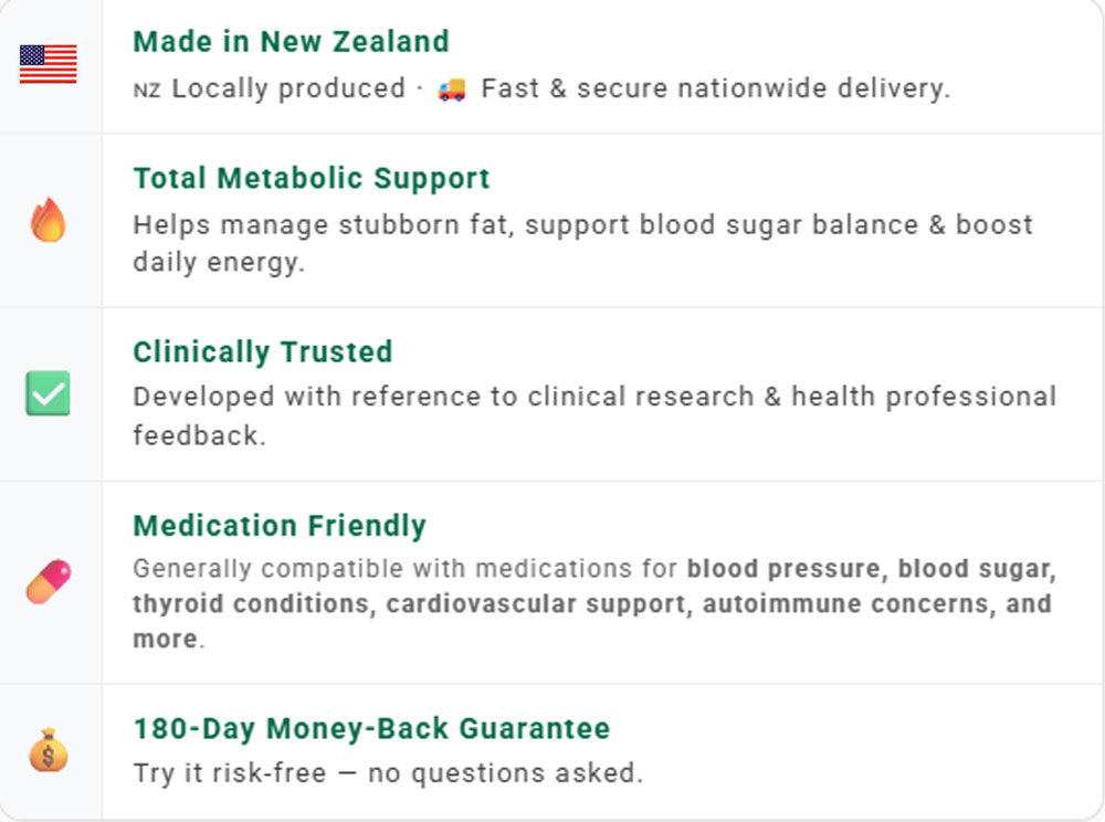 Aquí es donde el apoyo metabólico específico puede marcar la diferencia, rompiendo este círculo vicioso al suprimir el apetito, estabilizar las fluctuaciones de azúcar en sangre y reactivar las señales de saciedad. El resultado: efectos más duraderos en la pérdida de grasa, niveles de energía más estables, mejor calidad del sueño y mejoras significativas en los indicadores de salud general.